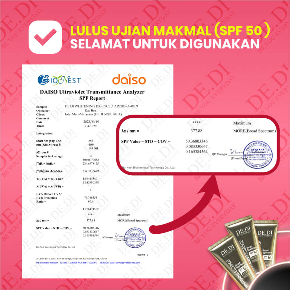 Tak perlu risau bila menggunakan DE.DI WHITENING ESSENCE kerana mempunyai kelulusan KKM dan ujian makmal serta selamat digunakan