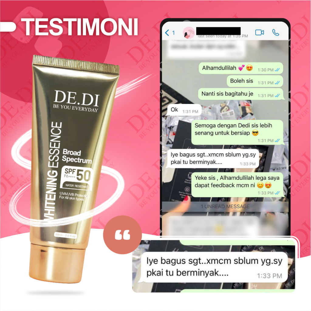 Kami sangat yakin Produk DE.DI WHITENING ESSENCE mampu menolong untuk merealisasikan impian anda untuk menyelesaikan masalah kulit wajah untuk menjadi semakin cantik dan kembali nampak muda 10 tahun.. Sudah tiba masanya untuk anda katakan YA untuk jadi cantik dan membuatkan pasangan anda bertambah sayang..