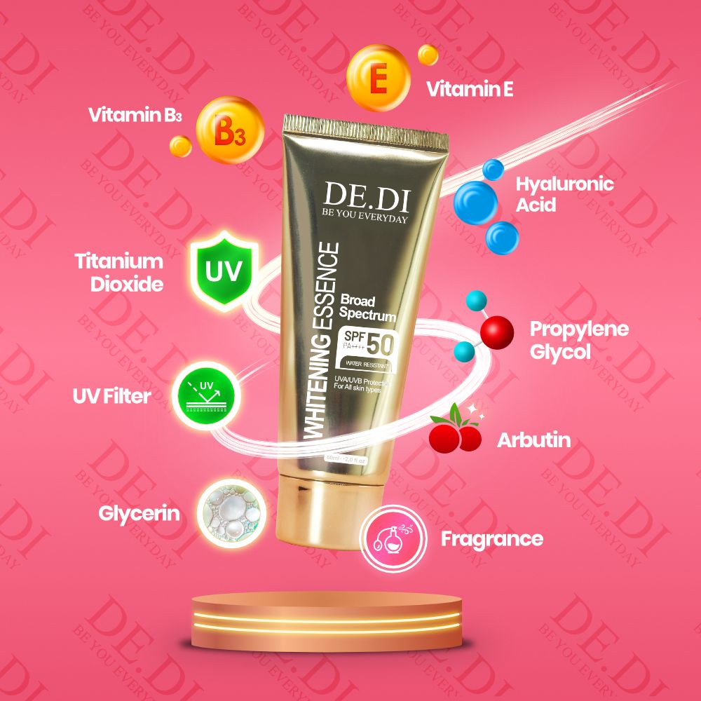 Arbutin & Glycerin bertindak sebagai Agen pencerah kulit, Anti-pigmentasi serta Humectant iaitu agen pelembap.